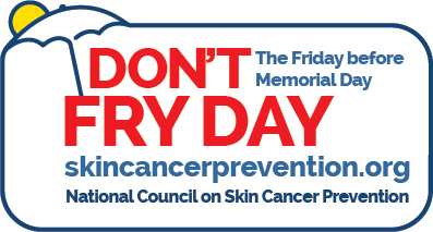 The Friday before Memorial Day is designated "Don't Fry Day" by the National Council on Skin Cancer Prevention to encourage sun safety awareness and to remind everyone to protect themselves while enjoying the outdoors. As 1 in 5 Americans will develop skin cancer in their lifetime and there is no such thing as a safe tan, I recommend the following steps to prevent tans or burns this weekend and every day in the sun: